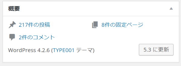WordPress 5.3 は PHP 5.6.20 以降を必要とするため、更新を実行できません。現在稼働しているバージョンは 5.3.3 です。