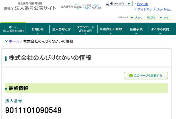 サイト名も法人登記名と同じく、「のんびりなかい」。