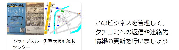 ます店名(かいせい物産)では覚えてる人もすくないでしょうから、「ドライブスルー魚屋」と検査します。