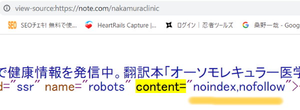 note社が僕のコロナ関連の58記事のうち30記事に対して、検索エンジンに載らないように「noindex」「nofollow」のタグを組み込んでいるという。半分以上のページに、「noindex」「nofollow」というメタタグが設定されていたと。