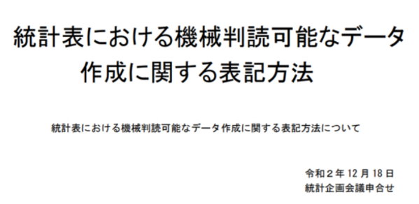 各省庁がネット上で公開する統計を機械判読可能にするために、データの表記方法を統一させます。エクセルなんて人に見せるものではないので、大前提都してデータの取り扱いのルールを原種するのは大切なことですね。
