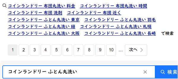 検索するとしないって、とても大きな違いがあります。 たとえば、「コインランドリー」と検索したら、複合に「コインランドリー ふとん丸洗い」と検索している人がいました。 唐突に理由もなく、「コインランドリー 布団丸洗い」と検索する人はいないでしょう。 「あぁ今日は天気もいいしやることもないので、コインランドリーでふとんをあらったらいくらくらいかかるのか調べよう!」とか思わないですよね。 たぶん、「ふとんを丸洗いしたい。洗濯機に入らないので困った。でもコインランドリーで洗えるってどっかで聞いたことあるけど、いくらくらいするんだろう?」のような感じでしょう。※検索意図 「ふとんを丸洗いしたい」というのは、検索意図 ではコンテクストはなんなのか?というと、「ふとんを丸洗いしたい」と思った理由、状況です。 たとえばヤフー知恵袋などの質問サイトで探します。