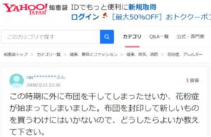 「ふとんを丸洗いしたい」と検索した理由は、花粉シーズンにふとんを干してしまい花粉症が始まったから。※コンテクスト 質問サイトのほかには、個人ブログ、Yahoo!ニュースのコメント、掲示板などをチェックするのがよいでしょう。