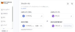 購入したイーサをmetamasukでポリゴンにブリッジ。