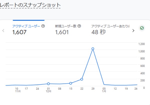 スナップショットでは、ユーザーを見ています。期間を指定し、トータルユーザー数と新規のユーザー数です。いわゆるアクセス数のユニークユーザー数。新規の逆でリピート数のチェックになります。