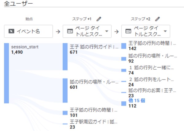 でも経路データは単純に、ページの移動をチェックできるので、とりあえずGA4を設置してみたという人にとっては、わかりやすいでしょう。