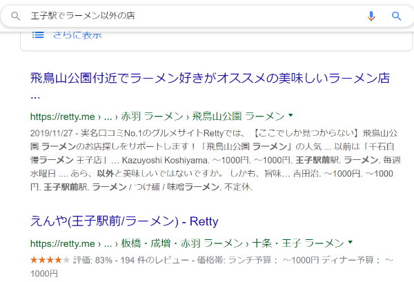 そこで、【王子駅でラーメン以外の店】と検索します。