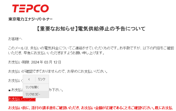 でもリンク先のドメインは、tokyotepco-jp.xyz。