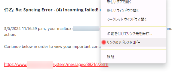 こういう場合も、リンクのアドレスをコピペでチェックしてください。