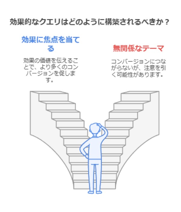 例えば「○○ 効果」などのクエリであれば、しっかりと効果の価値を伝える。