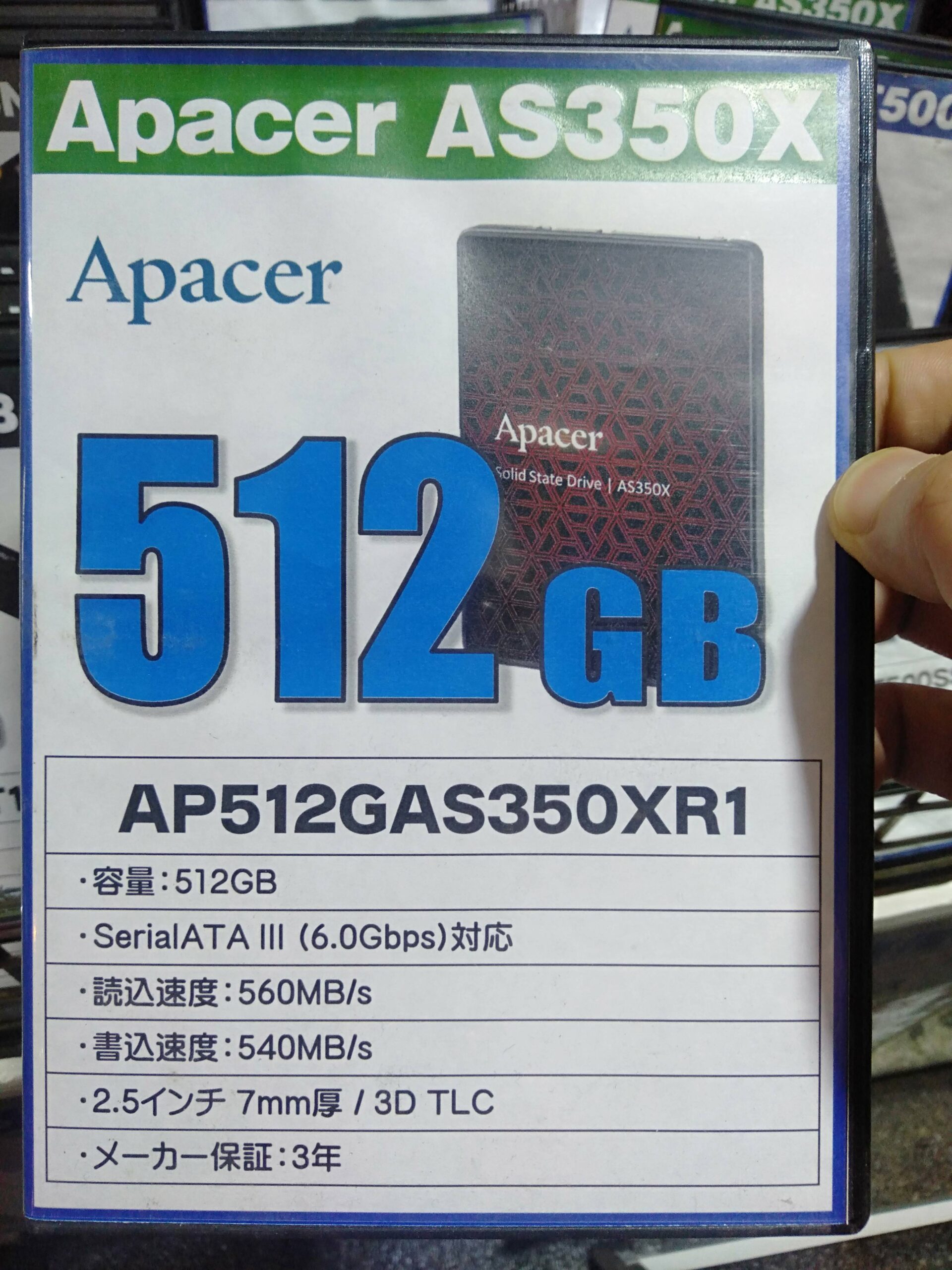 Apacer AS350X 512GBを購入して無事に帰宅。