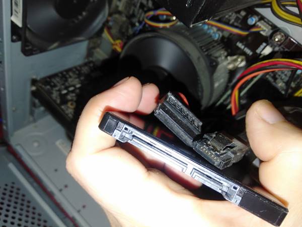 SATAケーブルと電源プラグの位置、固定方法などを一つずつチェックしてもらいました。