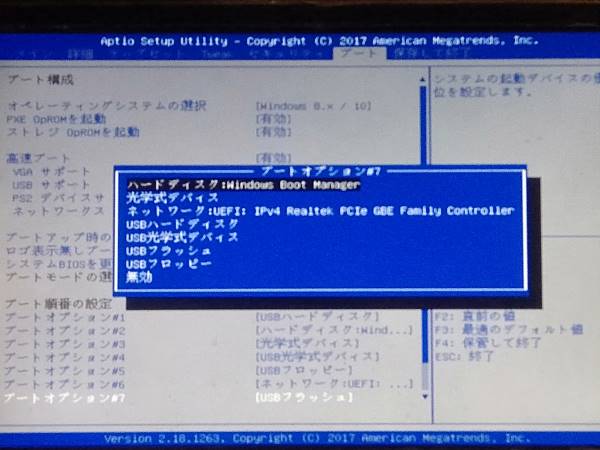 最初は単にBoot Order(起動順序)でSSDを最優先にしてもHDDから起動してしまうなど、一番苦戦した部分でした。