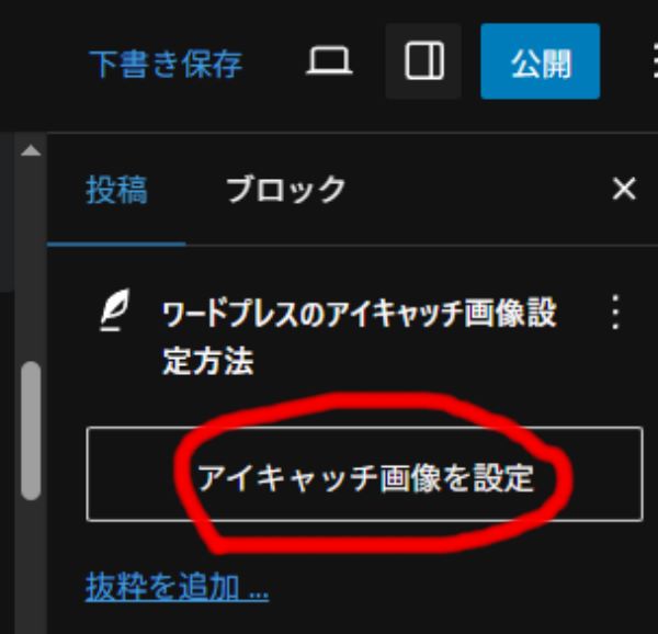2.右サイドバーの「アイキャッチ画像を設定」をクリック
